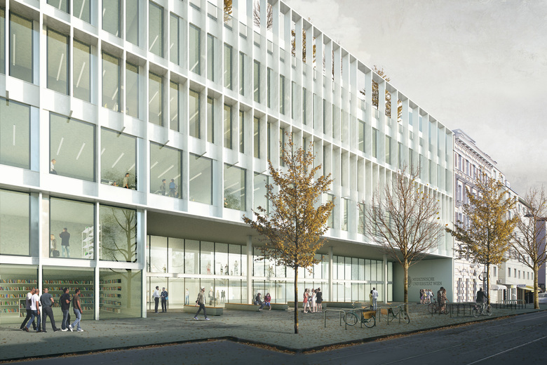 In der klar rhythmisierten Fassade sind die Funktionen der dahinterliegenden Geschosse ablesbar. Im Inneren findet man weitestgehend stützenfreie Räume mit einer hohen Flexibilität, perfekt für die heterogene und sich ständig ändernde Raumnutzung einer Universität. Der Komplex ist durchgehend auf einer klaren, orthogonalen Struktur, basierend auf dem 1,20 Meter - Modulraster aufgebaut. Die Decken überspannen in Querrichtung mittels Unterzügen die Traktbreite, um möglichst große zusammenhängende – und damit flexibel unterteilbare – Nutzungseinheiten zu ermöglichen.