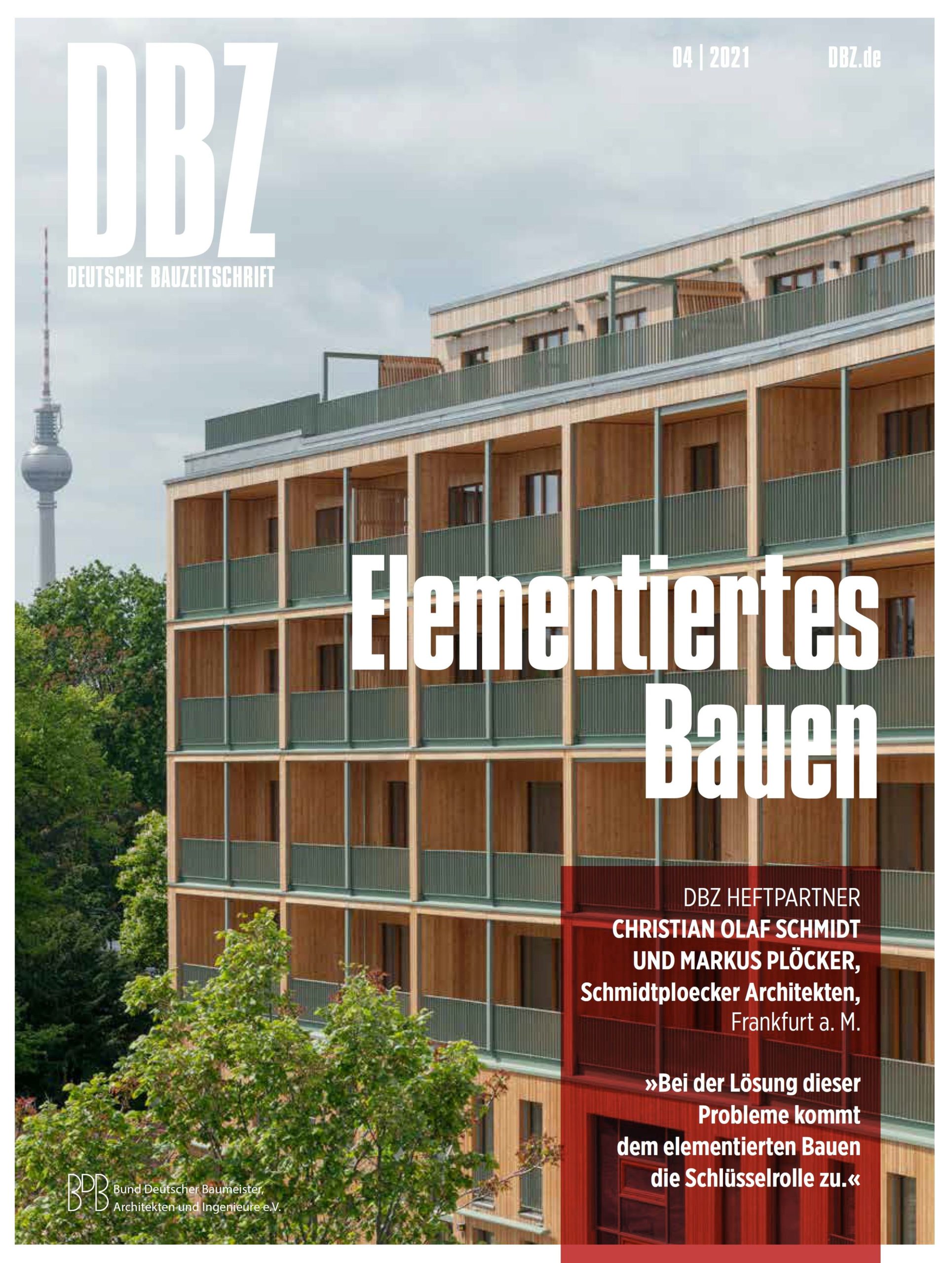 SCHMIDTPLOECKER als Heftpartner für die April Ausgabe der Deutschen BauZeitschrift, welche sich dem Thema „Elementiertes Bauen“ widmete. Neben einem einleitenden Standpunkt, sowie eines Projektberichts über das Projekt Deutsche Bahn Tower an der Frankfurter Europaallee, konnten wir zusätzlich auch einen Fachbeitrag zu unserem Forschungsprojekt „Minus 30 - Mehr als Weniger“ beisteuern.