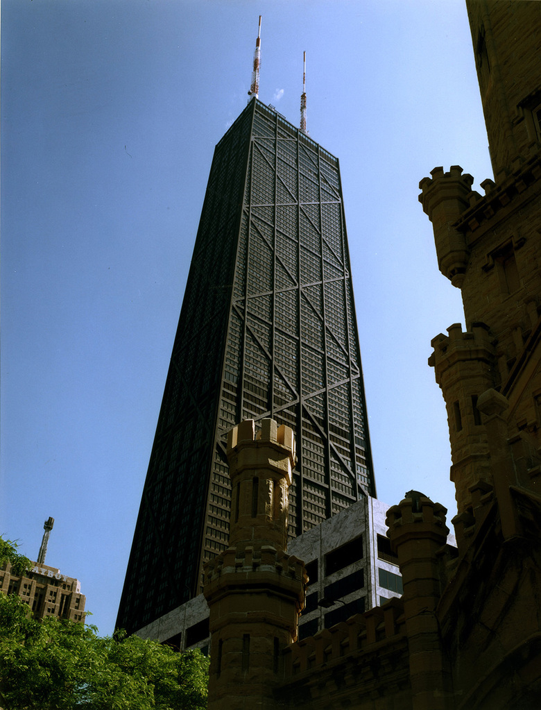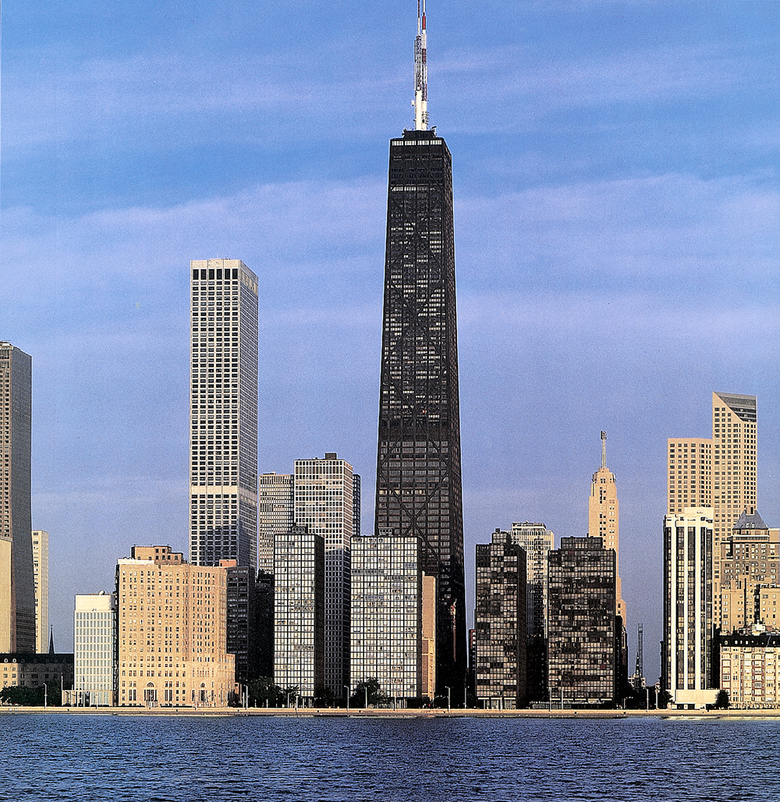 The world’s first mixed-use high-rise, the John Hancock Center is an architectural icon mirroring the collaboration between architect Bruce Graham and structural partner Fazlur Khan. The multidisciplinary nature of the design remains an archetype for the collaborative ideal that continues to make SOM a leader in the spectrum of design disciplines. The tapered shape of the tower was chosen in order to match the different floor space requirements which decrease from bottom to top—from the entrance and commercial zones at the base and the parking floors above them to the clusters of small apartments at medium height and finally to the large apartments on top where relatively less space is needed for ancillary rooms.