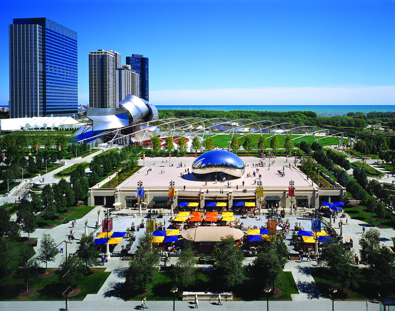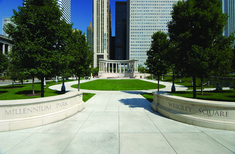 This master plan creates a seventeen-acre park, filling a void at the corner of Grant Park and connecting it to Michigan Avenue with a great lawn, pedestrian bridge, and concert pavilion. Abundant and varied public space fulfills Chicago’s motto Urbs in horto, or “city in a garden.” With space for performance, athletics, and public art, like Anish Kapoor’s Cloud Gate and Jaume Plensa’s Crown Fountain, Millennium Park is a key element in an extensive urban revitalization.