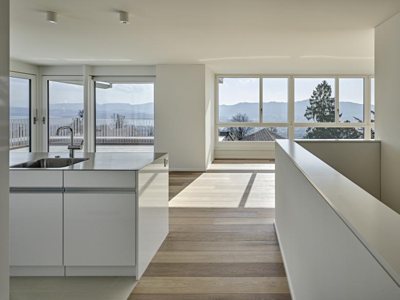 Die beiden Grundstücke liegen am Siedlungsrand des Zürichberges. Nördlich angrenzend ist eine Freihaltezone mit Schrebergärten. Erste Analysen haben deutlich gemacht, dass eine Erhaltung der Bestandsbauten auf den beiden Parzellen aus verschiedenen Gründen nicht zufriedenstellend ist. Die beiden kleinkörnigen Neubauvolumen werden präzise in die Hangsituation eingepasst und fügen sich harmonisch in die Bebauungsstruktur des durch Villen geprägten Quartieres ein. Beide Bauten sind als Zweispänner konzipiert. Der Bau Hinterbergstrasse 108 beinhaltet neben 2.5 Zimmer-Wohnungen auch Einheiten mit 4.5 Zimmer. Für den Bau Hinterbergstrasse 110 wurde aufgrund wirtschaftlicher Aspekte das Konzept von Kleinwohnungen umgesetzt. Mit der allseitigen Ausrichtung mittels französischen Fenstern und grosszügigen Verglasungen im Bereich der Balkone wird der Lagequalität im Übergang zur Naherholungszone von Zürich Rechnung getragen. Der Kompaktfassade wird mit einem grob strukturierten Verputz die notwendige Tiefenwirkung verliehen. Die Leibungen werden mit Metallzargen präzise ausformuliert. Um die monolithische Wirkung nicht zu verunklären, wird auf die Ausbildung eines Sockels verzichtet.