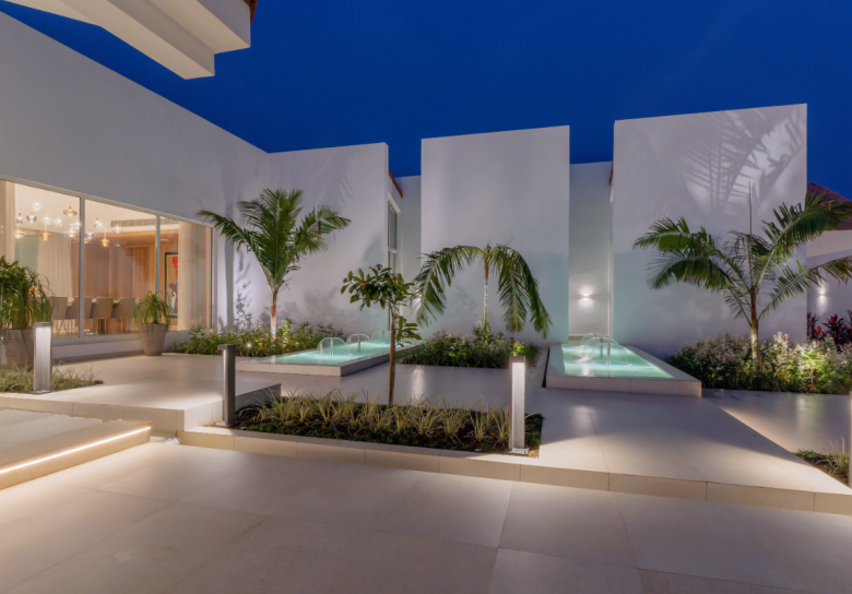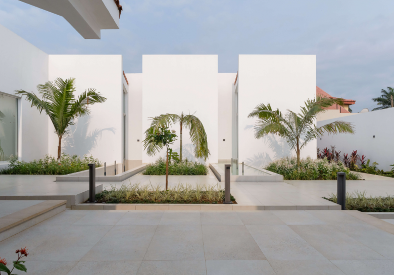 In an attempt to break down the barriers that are generated by the typical layout of a luxury villa (house surrounded by a garden), the proposal divides the single volume, integrating it with the landscape and creating a series of courtyards that respond to the different users of the property and their needs. This architectural typology allows us to play with the various levels of privacy and permeability that were so important to this client.