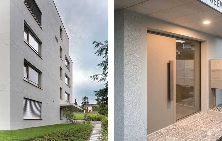 Die Aufgabe bestand darin, auf einem neu aufgezonten Grundstück Mietwohnung zu planen. Das Gebäude ist das erste seiner Art, umgeben von Einfamilienhäusern und als Neues inmitten von Bestehendem gedacht.