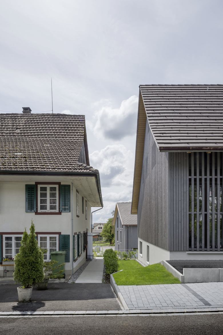 Wichtig war die traditionelle Bauweise der Kernzone zu berücksichtigen, jedoch auch eine zeitgemässe Formensprache zum Ausdruck zu bringen. Die Häuser sind als grosszügige, offene Wohneinheiten geplant, welche vor allem Familien gerecht werden.