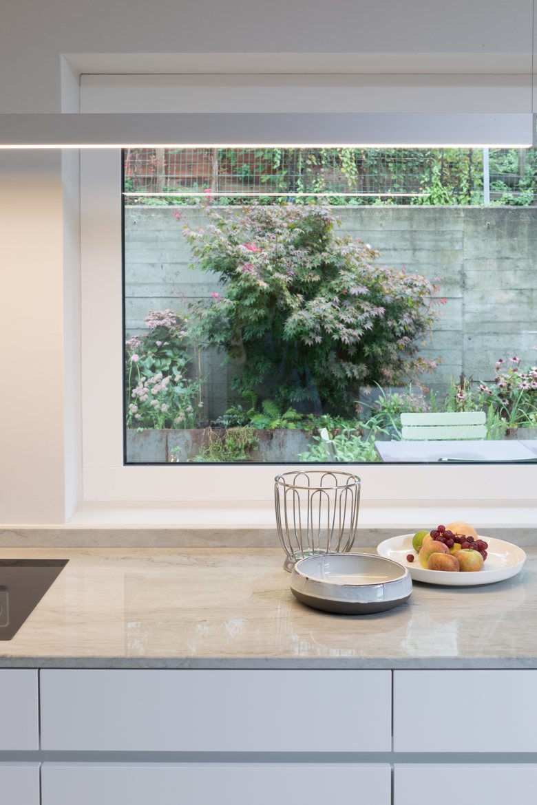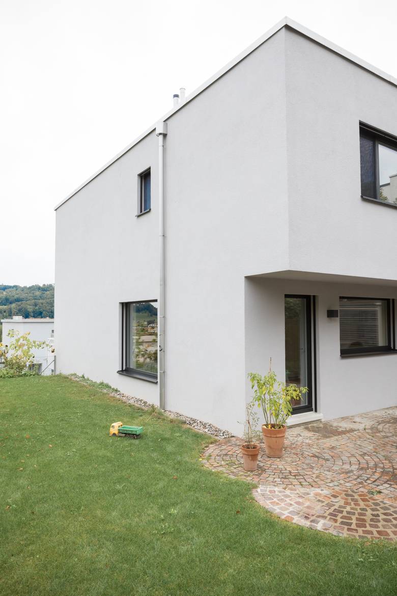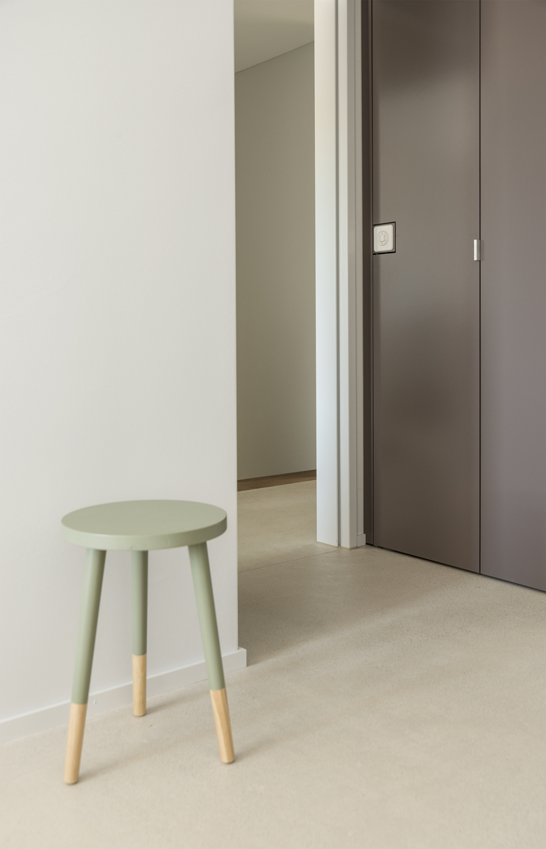 Das kleine Reiheneckhaus musste umfassend renoviert und energetisch optimiert werden. Mit neuer Fassadenisolation, Fenstern und einer Wärmepumpe wurde das Haus auf den neusten Stand der Technik gebracht. Im Innern galt es das Haus den aktuellen Bedürfnissen einer Familie anzupassen und zu modernisieren. Ziel war es, aus den beschränkten Quadratmetern eine Grosszügigkeit zu schaffen. Durch die Öffnung des Erdgeschosses bekam das ganze Haus einen offenen Charakter. Das Obergeschoss mit den Schlafräumen ist wieder kleinteilig aber gut ausgenützt gestaltet. Die Farbgebung ist bewusst zurückhaltend gehalten und die Wände sind in einem leichten Grauton gestrichen. So entsteht ein gutes, angenehmes Wohnklima