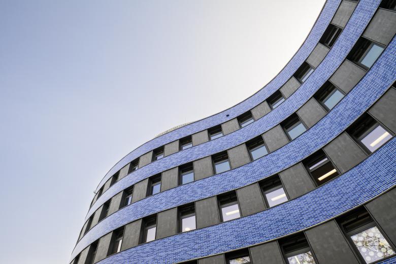 Das Gebäude wurde in Mauerwerks- und Betonkonstruktion errichtet und fällt durch Farbigkeit und Materialität sofort ins Auge, weshalb das Gebäude auch den Namen „Das blaue Haus“ erhalten hat.