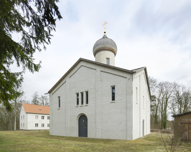 Hier entstand im Auftrag der Berliner Diözese der Russischen Orthodoxen Kirche die Klosterkirche St. Georg. Neben der Errichtung des Gotteshauses sieht das Projekt auch die denkmalgerechte Sanierung der Bestandsgebäude vor: So sollen in Zukunft das Herrenhaus und seine Nebengebäude zu einem Gästehaus umgebaut werden, in dem Besucher und Pilger untergebracht werden können.