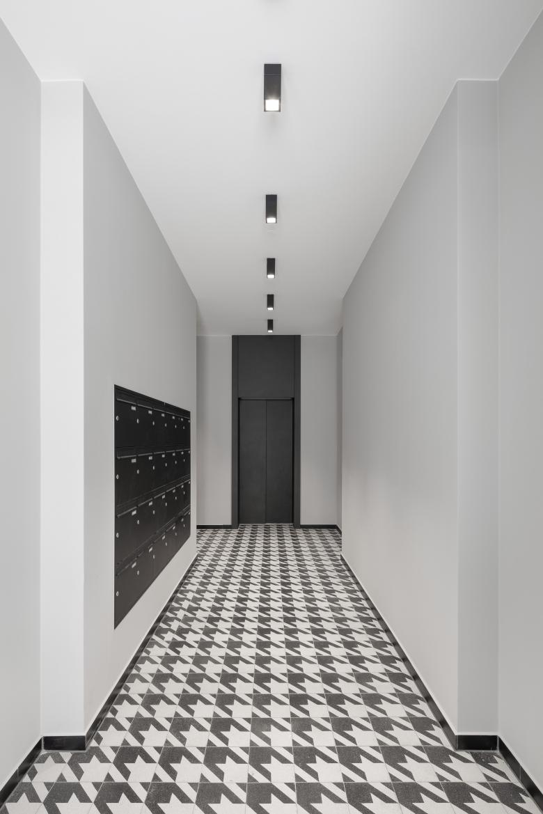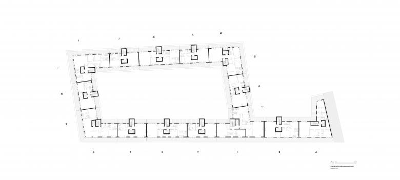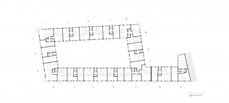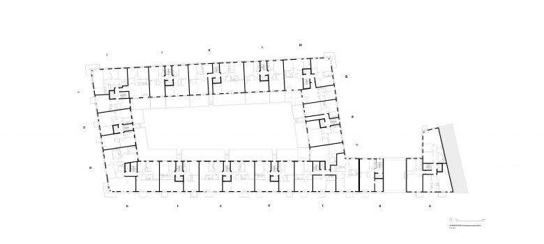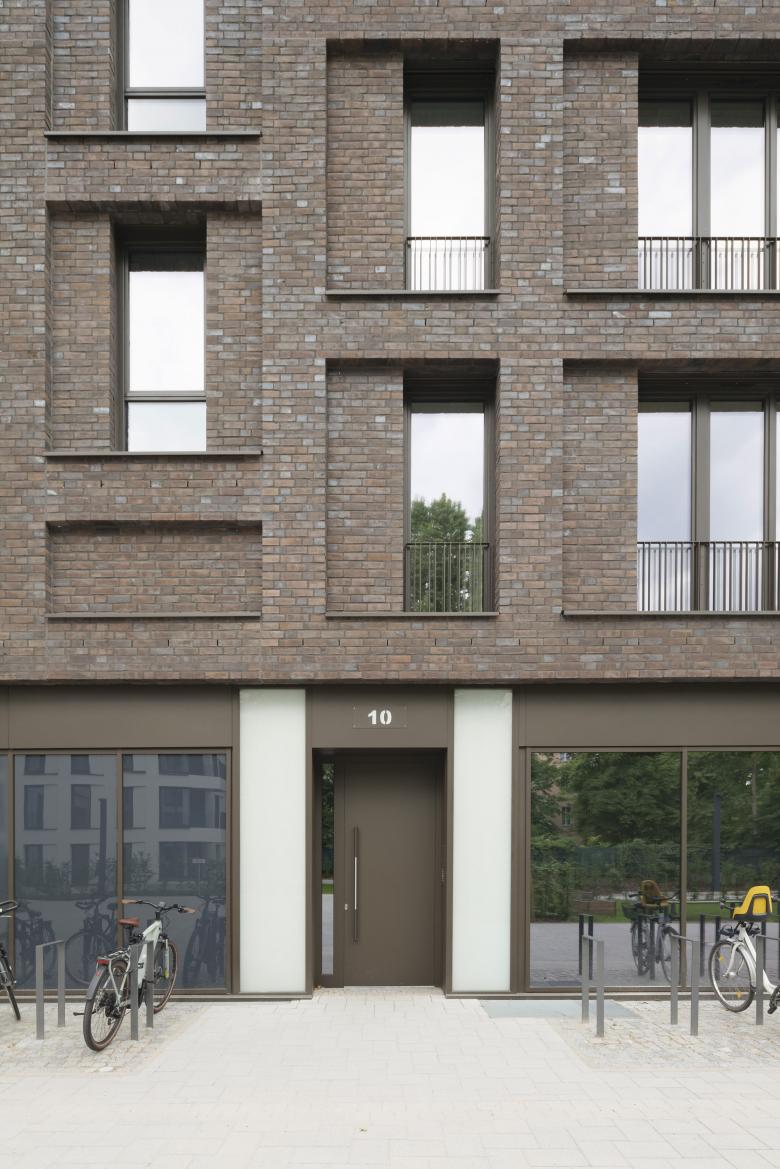 Insgesamt entstanden hier 182 Wohnungen. Die Größe der Ein- bis Zwei-Zimmer-Wohnungen bewegt sich zwischen 46 und 146 Quadratmetern. Im Norden und Osten erhalten die Erdgeschosswohnungen Terrassenflächen mit kleinen Vorgärten aus Strauch- und Baumbepflanzungen und Spielbereichen.