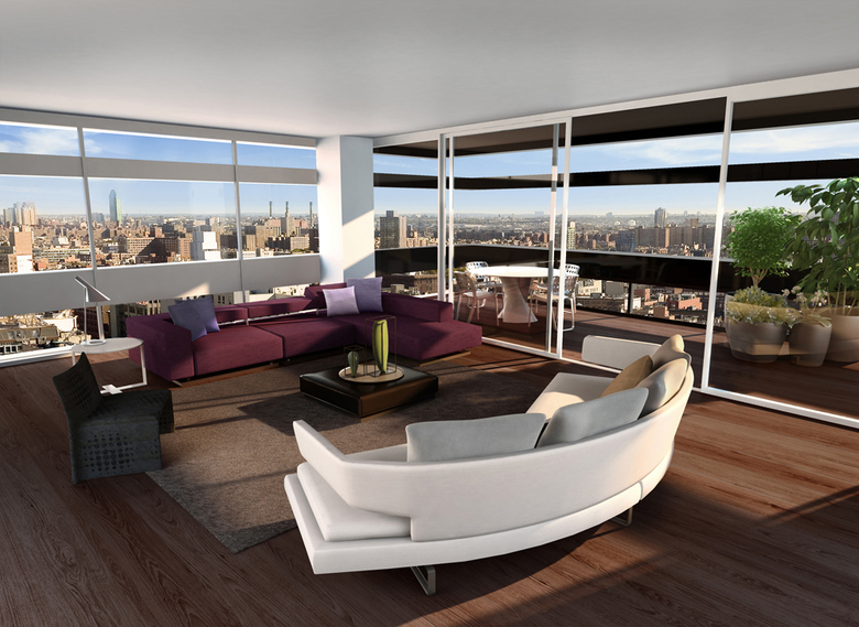 Five Franklin Place contains 55 residences of three distinct types; Loft Residences, City Residences and Sky Penthouses. The apartments range in size from approximately 1,200 square feet to approximately 3,400 square feet, and include one-, two-, three- and four-bedroom apartments configured as duplex lofts or single-level homes, as well as three soaring duplex penthouses with interior elevators and rooftop terraces.