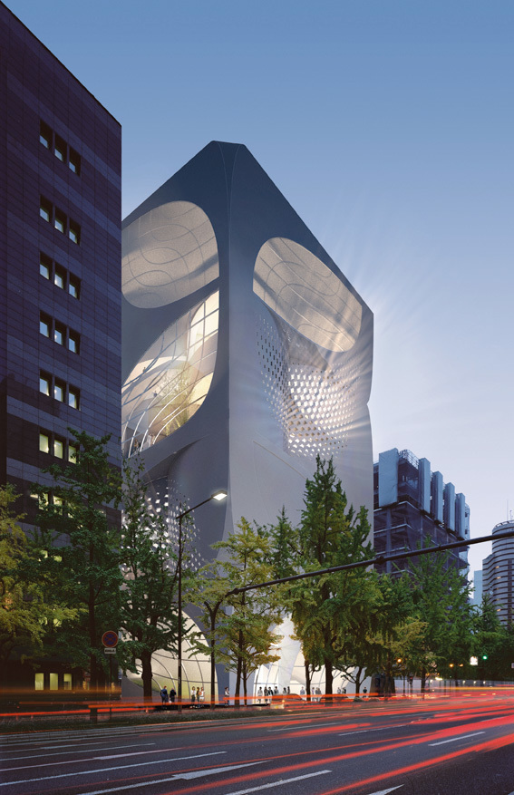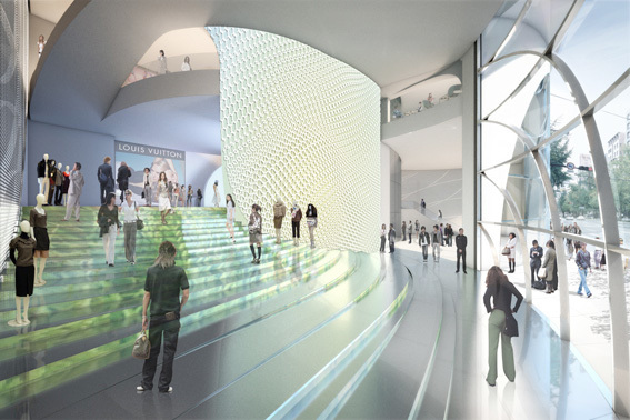 Imagining Louis Vuitton – The proposal aims to establish an architectural equivalent of the identity of Louis Vuitton, which consists of a blend of classical and modern qualities. The LV products celebrate traditional craftsmanship, the mythology of travel, and luxury and celebrity. As a collection, these products create a historic line that connects you, as the customer, to other contemporary and historic participants in the material culture of Louis Vuitton. This material continuity is materialized in the architecture.