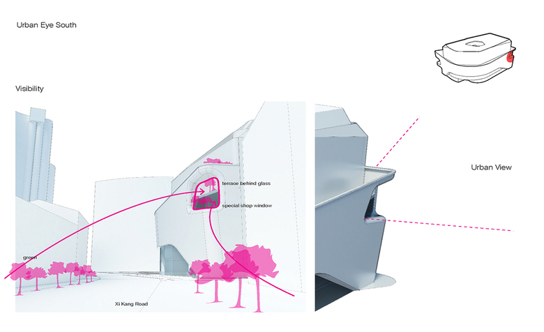 These smaller pockets, positioned in a rotational manner, create intimate plazas and are visually connected to the urban eyes of the facade.