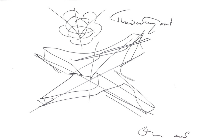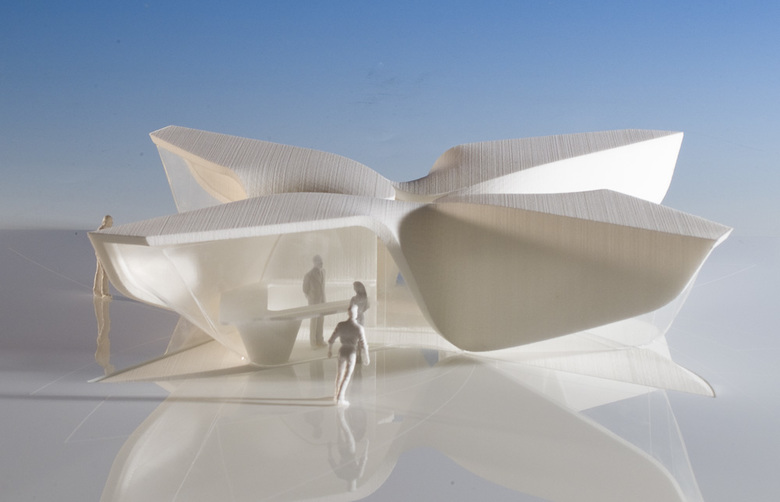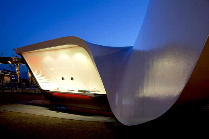 Placed on the New Amsterdam Plein, the NY400 Dutch Pavilion is presented as a gift from the Dutch government to the people of New York. The pavilion marks the location as a destination and a ‘hub’ of a multivalent programme. The programme oscillates between facility services (culinary outlet and information point) and more temporary or changing art and new light/media installations. The geometry of the pavilion expresses its programmatic intentions, with the centre of the installation designed for more permanent functions. The formal figure of the structure becomes increasingly more fluid and dispersed away from this centre as it opens up onto the immediate landscape. The attendant ‘flowering’ of the four wings of the pavilion responds to varying orientations on the site.
