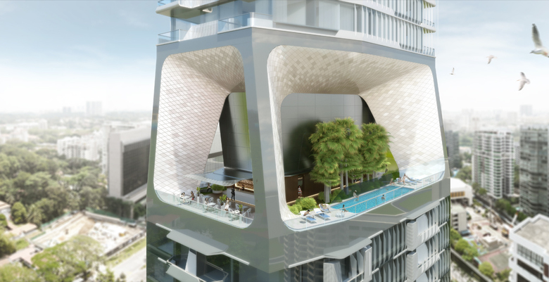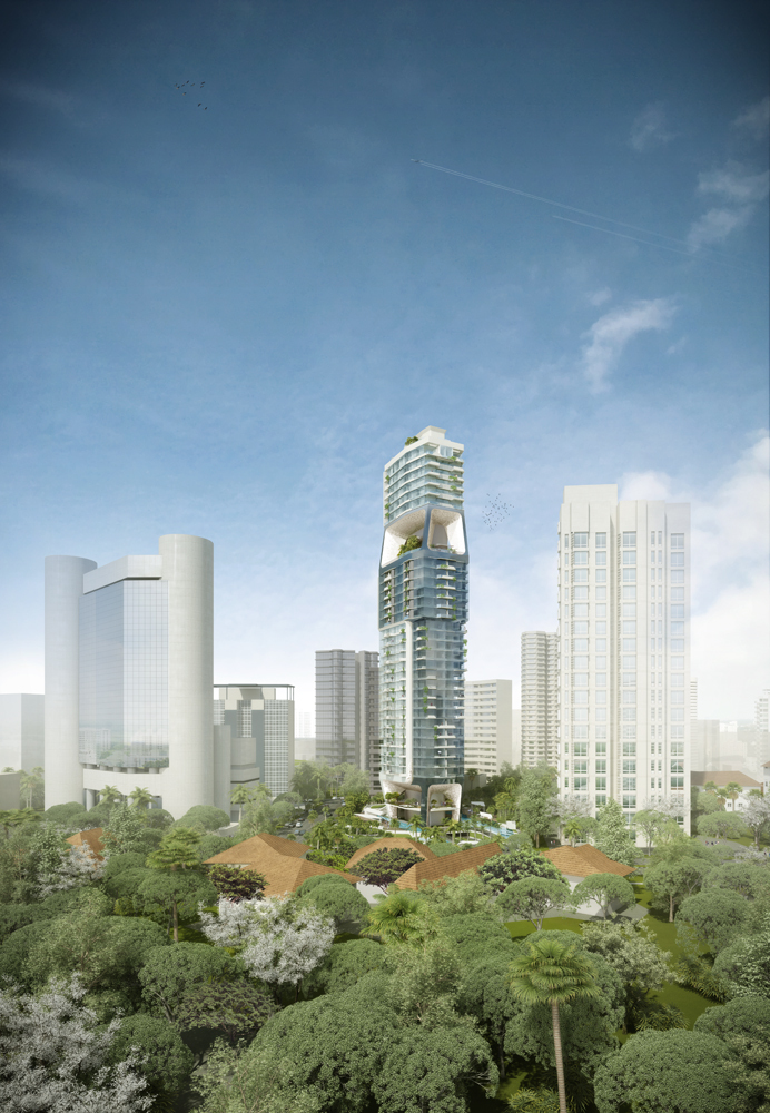 Ben van Berkel: "An interesting facet of The Scotts Tower is the way that it reacts to the urban context of Singapore. Instead of the more usual means of planning a city horizontally, we have created neighbourhoods in the sky; a vertical city where each zone has its own distinct identity."