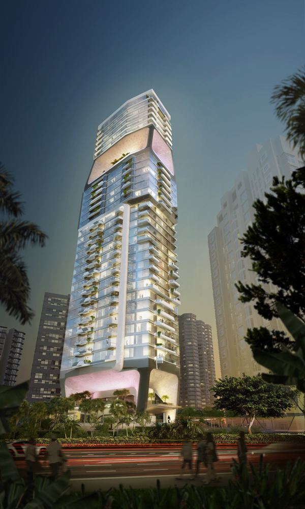 The 18,500m2, 31-storey, 231-unit tower consists of 1 to 3-bedroom apartments and 4-bedroom penthouses; expansive landscaped gardens, sky terraces, penthouse roof gardens and diverse recreational facilities.