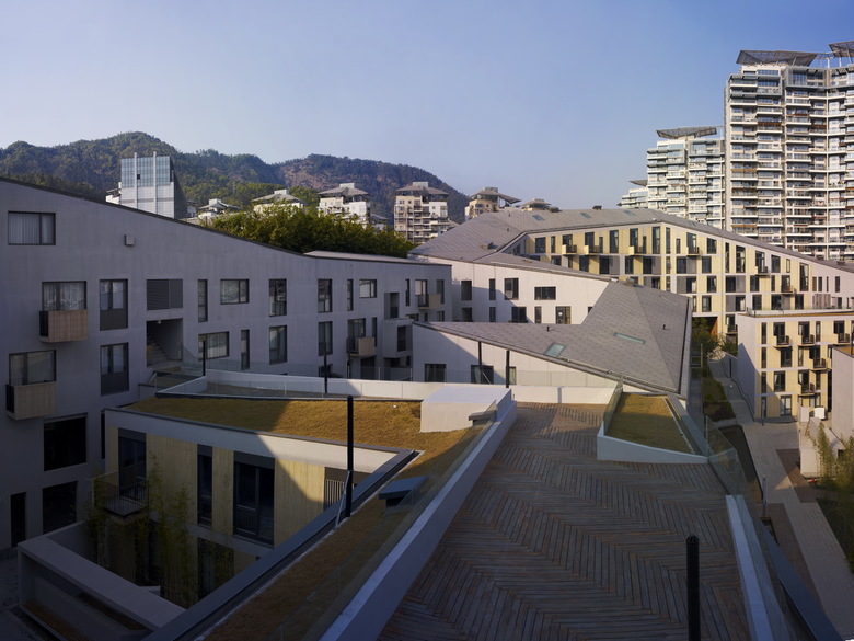 The project returns to fundamental ideas in Chinese living as expressed by the saying “hills outside hills, and gardens inside gardens,” an idea referring to a continuous and occasionally repeating rhythm of space and form found in many traditional villages and mountainous landscapes. The relationship between nature and building is blurred in an attempt to create a new kind of urban village.