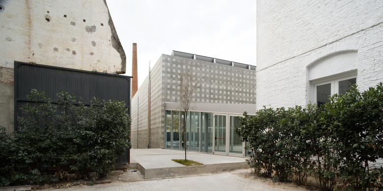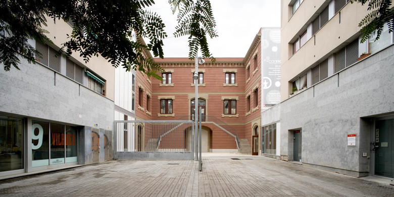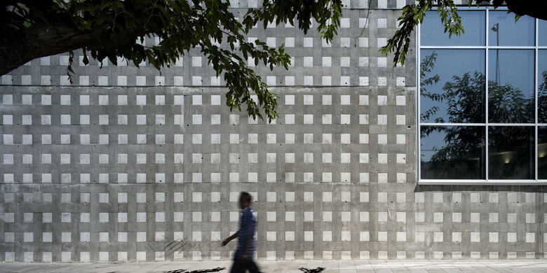 the new building is materially and formally austere. the façade is made from exposed in-situ concrete, giving a texture that is a homage to the start of the textile industry in catalonia in this area of the city. the texture has come from a specially combined formwork of timber planks of different characteristics.