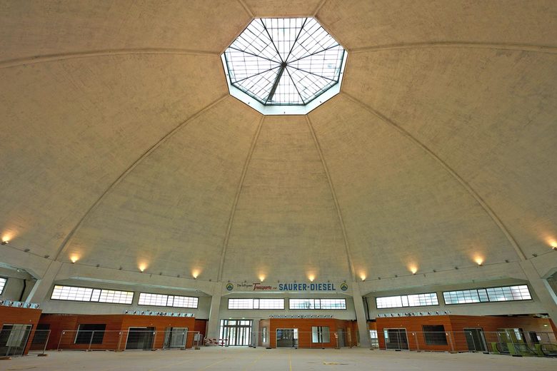 Nach 75 Jahren wurde die Markthalle einer neuen Nutzung als Einkaufscenter zugeführt und gleichzeitig unter Denkmalschutz gestellt. Für die Umnutzung wurde die bestehende Bausubstanz erweitert, verstärkt und die Tragstruktur instandgesetzt. Die signifikanteste bauliche Erweiterung war die Erstellung von 4 Untergeschossen unter einer Hälfte der bestehenden Kuppelhalle. Sämtliche bestehenden Tragelemente, welche mit dem neuen Untergeschoss unterfahren wurden, mussten temporär abgefangen und neu fundiert werden. Unter anderem musste eine der acht bestehenden Kuppelstützen durch die neuen Geschosse hindurch geführt und um 5 m verlängert werden. Die Stützenlast von 400 Tonnen musste dazu temporär mittels einem Stahlbock aus Mikropfählen abgefangen werden.
