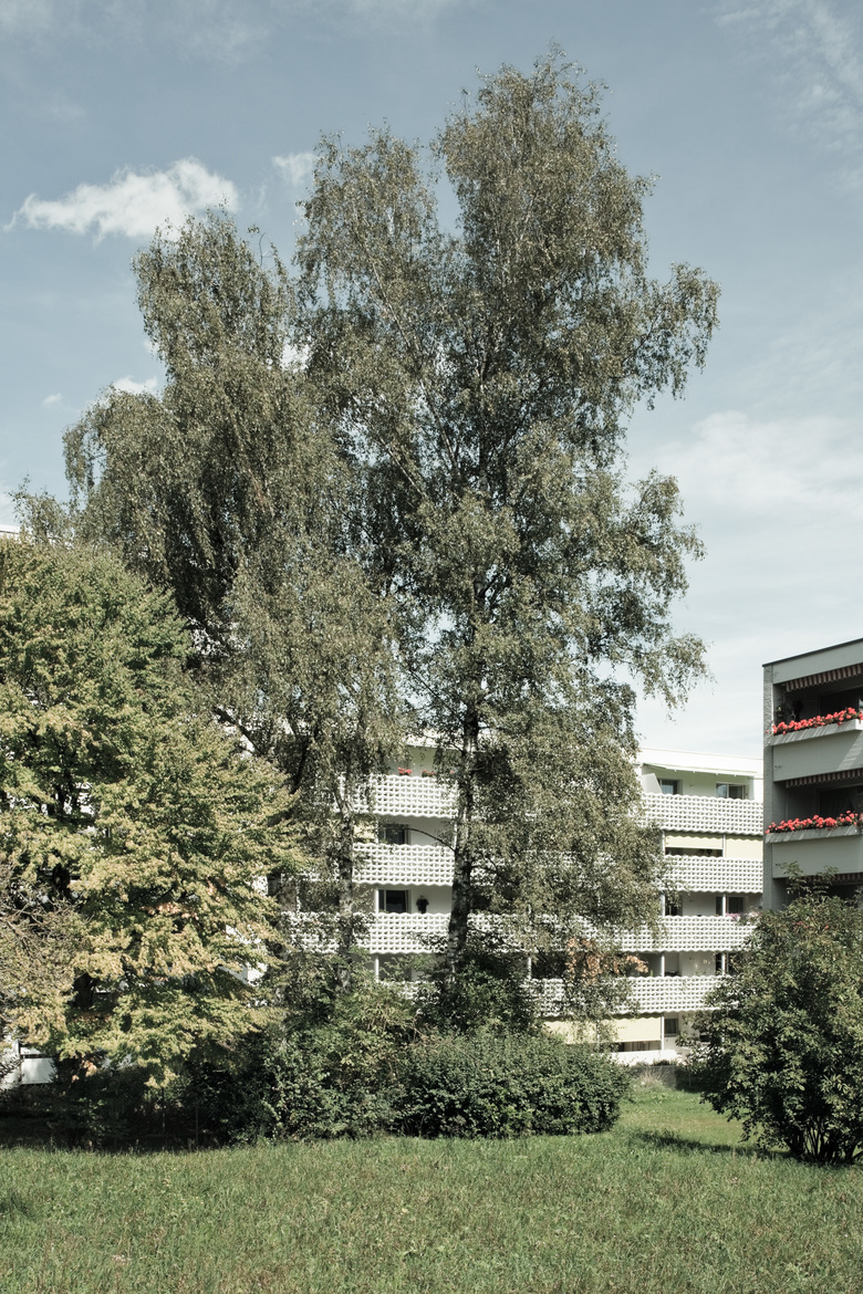 Gesamtsanierung der Alterssiedlung aus den siebziger Jahren mit Wohnungzusammenlegungen. Neue Gemeinschaftsbereiche. Balkone.
