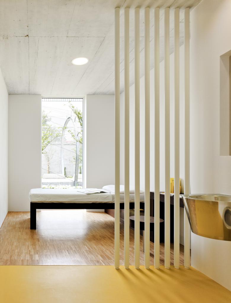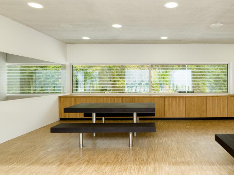 3 Stationen für je 9 Patienten mit Aufenthalts-, Arbeits- und Therapieräumen. Personal-, Eintritt- / Austritt- und Besucherbereiche. Gymnastikraum und Andachtsraum. Hoher Sicherheitsstandard. Minergiestandard.