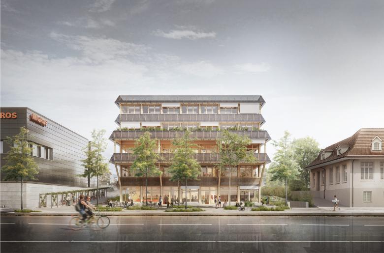 Der Neubau für das Gemeindehaus von Münsingen ist flexibel und nachhaltig; er bietet komfortable, direkt belichtete Räume, welche unterschiedlich genutzt werden können. Ziel des Projekts ist es, innerhalb von dreissig Jahren einen "zero impact" zu erreichen: die Solarpaneele auf den Fassaden und auf dem Dach kompensieren die Treibstoffgase der Erstellung des Gebäudes und den Eigenverbrauch von Energie; die 210 m tiefen Erdsonden sorgen für Wärme und Kälte; der sehr kompakte Holzbau wird umweltschonend aus nachwachsenden Rohstoffen erstellt.