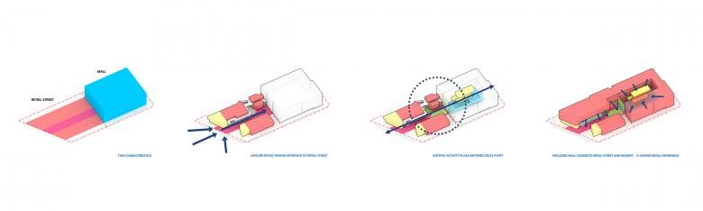 Jointly led by two Design Partners, Ted Givens and Chin Yong Ng, the concept for this new development is to break away from the conventional shopping mall design and instead draw inspiration from a more traditional market square, creating a central meeting place for public enjoyment.