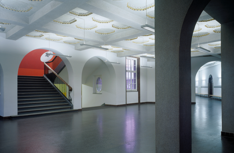 Im Inneren wurde durch geschickte Organisation der Grundrisse zusätzliche Räume verfügbar. Im zweiten Obergeschoss wurde daraus sogar ein Singsaal bzw. unter Einbezug der Halle ein Versammlungsraum. Zur Klärung von unübersichtlichen oder verbauten Situationen wurde nur örtlich eingegriffen.