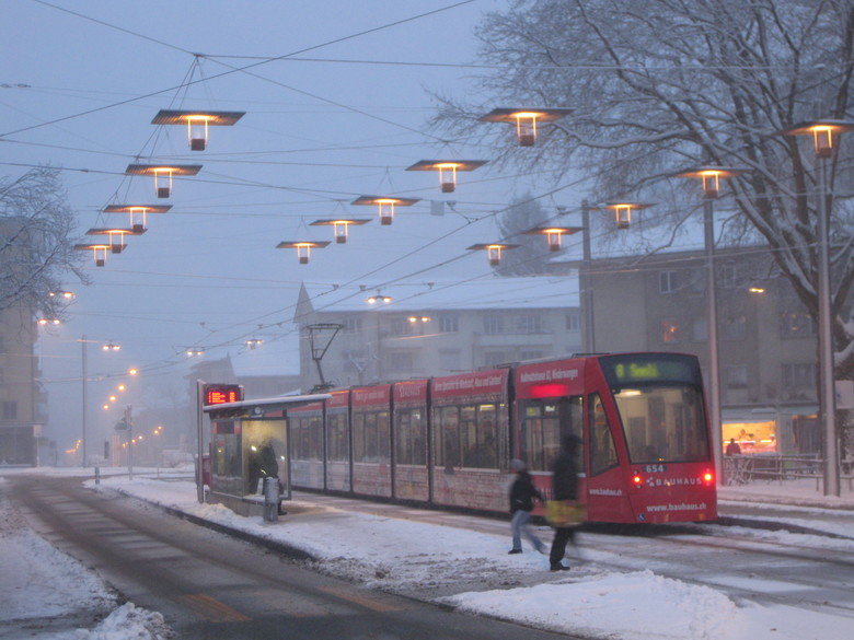 Das Tramtrasse durch Bümpliz führt durch eine gewachsene, heterogene Siedlungsstruktur, vorbei an Identifikationsorten – Haltestellen - mit ganz unterschiedlichen Aussagen. Mit der Einführung des Trams in Bümpliz wird ein Maßstabwechsel stattfinden. Gewohntes wird sich verändern. Durch das Erstellen einer Serie von sich wiederholenden gleichen Elementen wie Abspannungsmaste, Beleuchtungskörper etc. entlang der Gleisanlage wird in Bümpliz ein Ordnungsprinzip eingeführt. Die heterogene Siedlungsstruktur erhält eine Mitte, einen inneren Zusammenhalt (vergleichbar mit der Wirbelsäule des menschlichen Körpers). Dieses Ordnungsprinzip kann nur wirken wenn es räumlich sichtbar ist, wie in diesem Fall unser Vorschlag für die Abspannmaste zeigt.