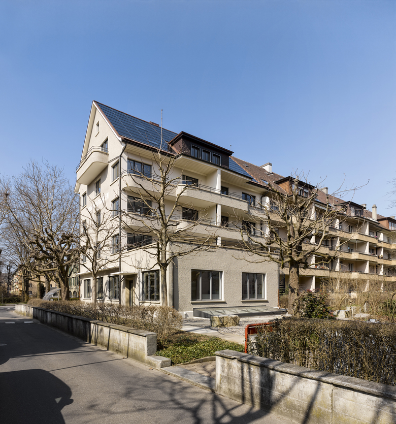 Das denkmalgeschützte Gebäude aus dem Jahre 1937 bildet der südliche Abschluss der Häuserzeile entlang der Papiermühlestrasse. Die Gibelfassade prägt den öffentlichen Raum Richtung Rosengarten. Ursprünglich als Wohnhaus mit Restaurant erstellt, wurden daraus später das Hotel und Restaurant Schweizergarten. Ab den frühen Achtzigerjahren des letzten Jahrhunderts werden die Räumlichkeiten als Büros genutzt.
