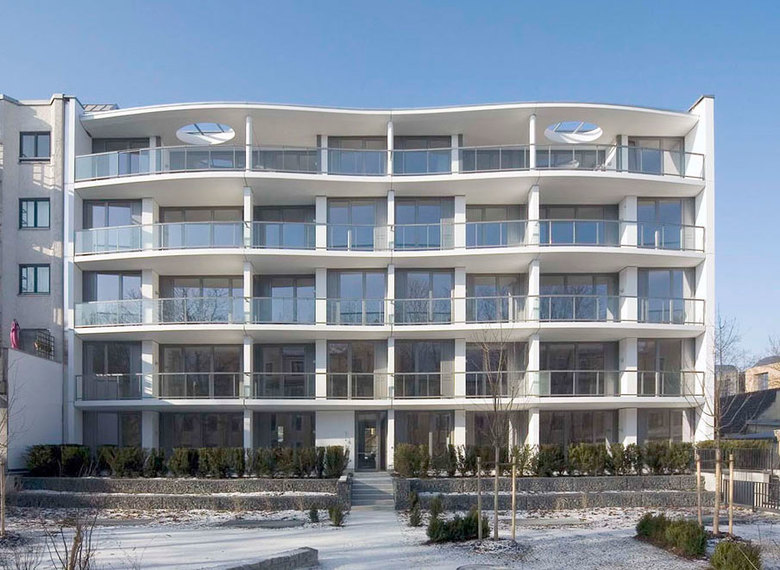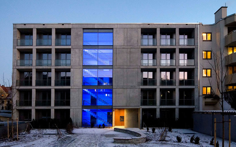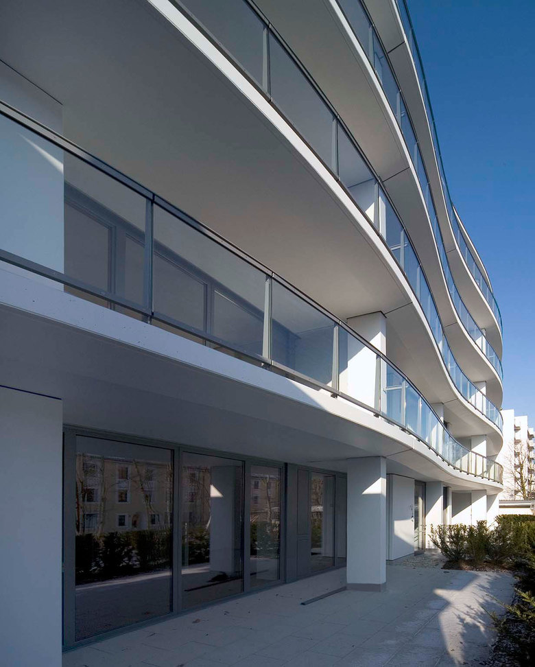 Die tragenden Bauteile der Fassaden, Decken, Balkone und Giebelwände wurden aus Beton Fertigteilen konstruiert und thermisch getrennt.