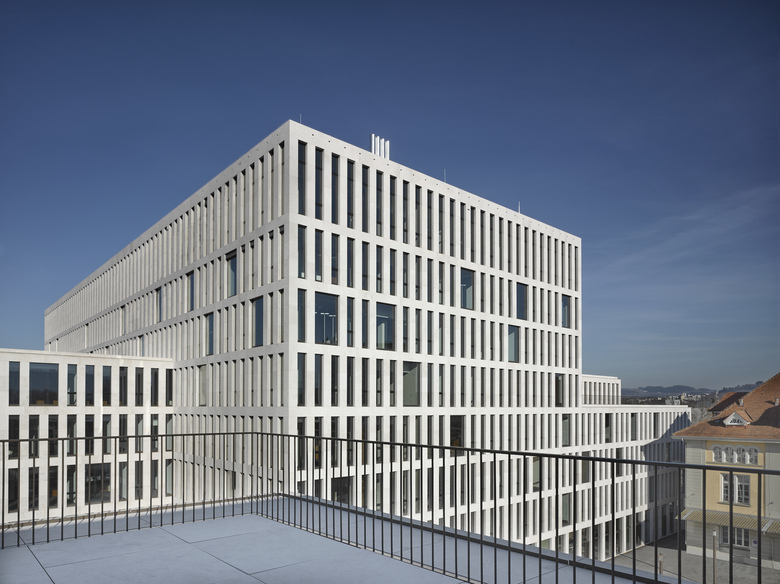 Das Areal des Verwaltungszentrums, in welchem rund 4000 Arbeitsplätze verschiedener Bundesämter konzentriert werden, liegt in einem heterogenen Umfeld zwischen Wohnquartieren, Fussballstadion, Allmend und Expo-Gelände. Hier entsteht in zwei Etappen ein durchlässiger und urbaner Stadtbaustein, welcher die rund um das Areal liegenden, verschiedenartigen Quartiere zusammenfügt.