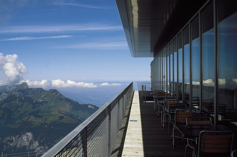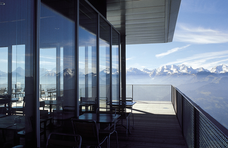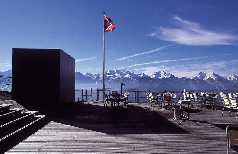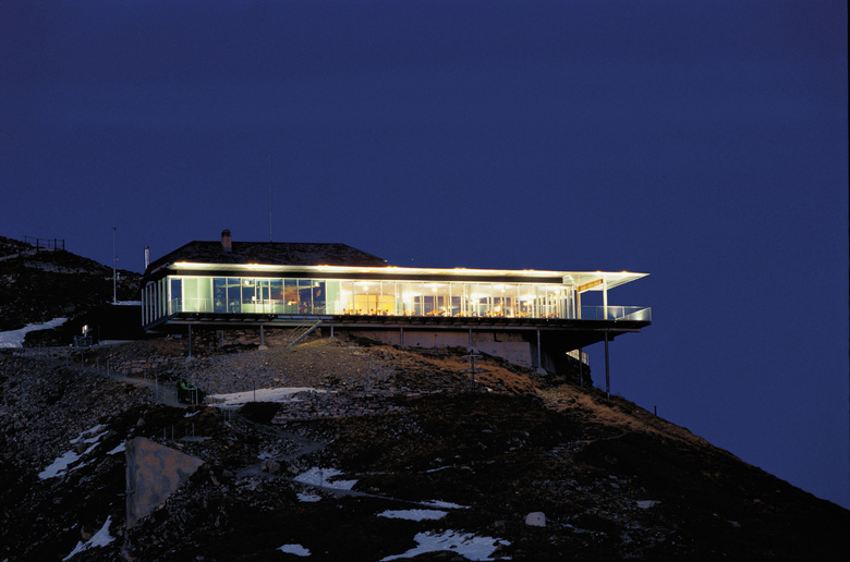Den Berg nicht berühren – das war das Motto. Die Eingriffe zeigen viel Respekt vor der Landschaft und setzen neue Massstäbe im diffizilen Bereich des Bauens in den Alpen. Das alte Berghaus wurde sanft saniert und um grosszügige Plattformen erweitert, die die einmalige Aus- und Weitsicht wie in einem Theater inszenieren. Dem Berghaus zur Seite gestellt ist ein leichter und sehr transparenter Anbau mit Pavilloncharakter. Aus der Ferne gesehen, zieht dieser Bau eine feine, die Künstlichkeit betonende Linie durch die Landschaft. Ein Lichtkonzept für den ganzen Gipfelbereich betont die Besonderheit des Ortes.