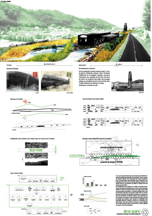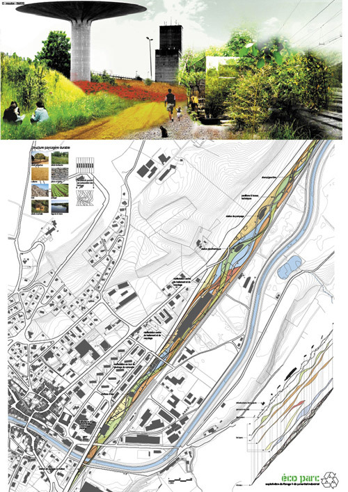 There is no sustainable project without a collective subject, no sustainable attractivity without a recognizable and promising identity. It is by changing the cultural identity of a community that it becomes possible of speaking of a sustainable project. Our proposition embodies the expression of the convergence of forces towards a new cultural coherence, a common identity, whose ambition is to re-establish a healthy dialogue between man and his territory. By amplifying the conditions of the reality, these intertwined bands, paradoxically protected by the transportation hubs, recreate a sort of biotope that gives a visible urban image to the ecological preoccupations. If industrial production remains the stronghold of Moudon’s economy, it shouldn’t be rejected. On the contrary, it nourishes the project and may allow the emergence of a new process of densification of the existing territory and therefore to economies on natural land. In this way, cohabitation is created between the inherent artificiality of man’s activities and the recreation of a natural milieu. Moudon will therefore no longer be an insignificant point on a random trajectory but a significant node on the trajectory of the contemporary nomad.