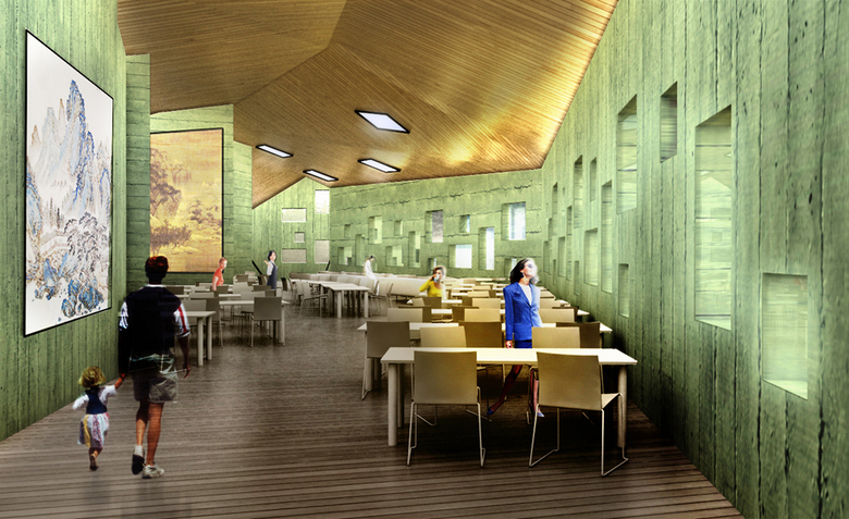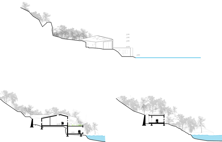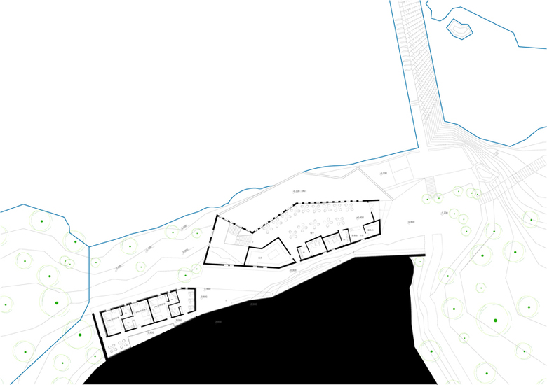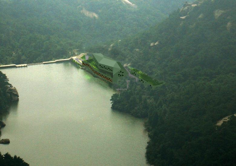 To define the new relation between this building and the surrounding nature the project has been inspired by the typical Chinese painting. In this kind of painting, the building and the nature are not 2 separated system stick together, they are represented as an integrated whole where the architecture is not the main focusing point of the composition. It reproduces in a way the natural form and follows the general movement of the landscape.