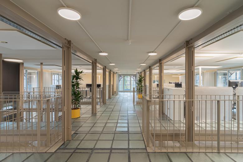 Die bisher als Archiv genutzten Obergeschosse des Nordtrakts zu Arbeitsplätzen umzubauen, erforderte einen umsichtigen Eingriff in die historische Bausubstanz.