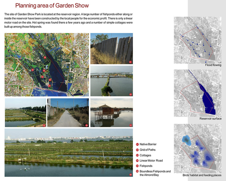 The 6th Xiamen International Garden Show was held in Xiamen in 2007. Considering future urban development, the city government decided to build Garden Show Park in Almond Bay and launched an international design competition in 2004. Atelier DYJG won the competition.The site was located in a reservoir and existing conditions was occupied by a large number of fishponds which was constructed for economic profit. In addition to a linear motor road, there were 2-meter-deep fishponds on most parts of the site. This conventional fishery production landscape conveyed rich humanistic information and invoked our creative passion. We believed this kind of topography will benefit for future Garden Show Park.