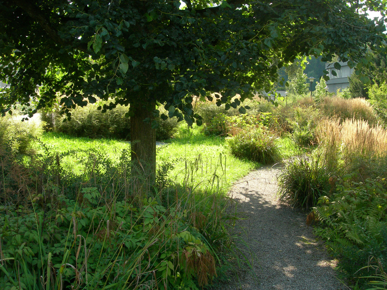 Seit Beginn des Planungsprozesses für die Umgebungsgestaltung der Kantonalen Psychiatrischen Dienste Liestal wurde das Ziel verfolgt, durch eine vielfältige Aussenraumgestaltung das Wohlbefinden aller - Patienten, Angestellten und Besuchern - zu fördern. Mit der differenzierten und geschwungenen Wegführung werden die Menschen unbewusst durch die Gartenräume geführt. Die unterschiedlichen Atmosphären dieser Räume sprechen die verschiedenen Sinne an und bieten abwechslungsreiche Möglichkeiten sich im Garten aufzuhalten und zu verweilen.