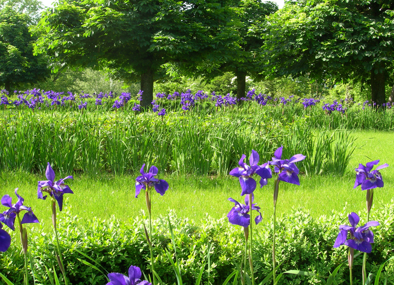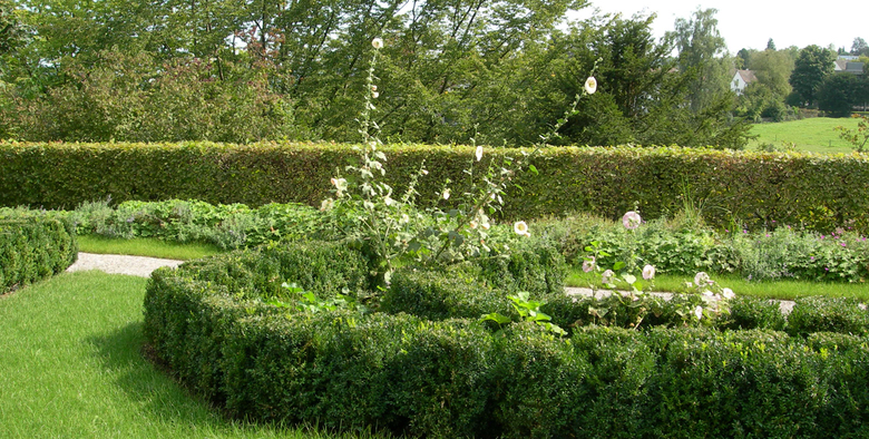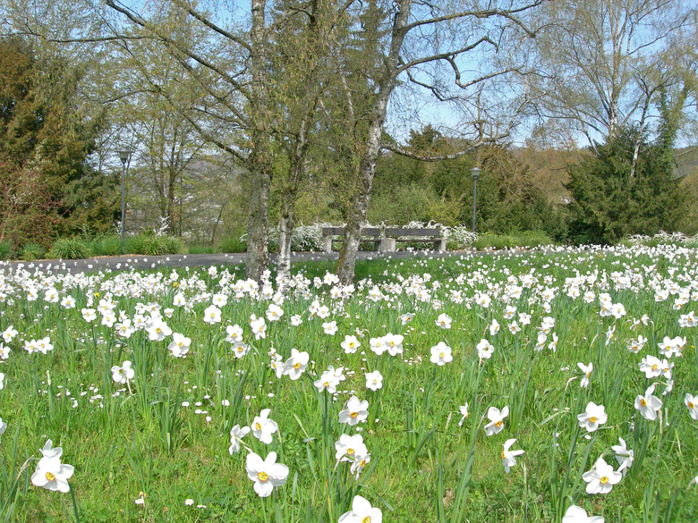 Indem der Besucher sich fortbewegt erfährt er immer wieder neue Bilder, die sich auch im Verlauf der Jahreszeiten verändern. Gestaffelt angeordnete Heckenbänder aus Buchs, Liguster und Kornelkirsche bilden, kombiniert mit blauer Iris, eine Abfolge von kleinen Gartenräumen in unterschiedlicher Ausgestaltung. Im Schatten der Kastanien und Ahornbäume befinden sich Aufenthalts- und Verweilplätze für Patienten und Angestellte.