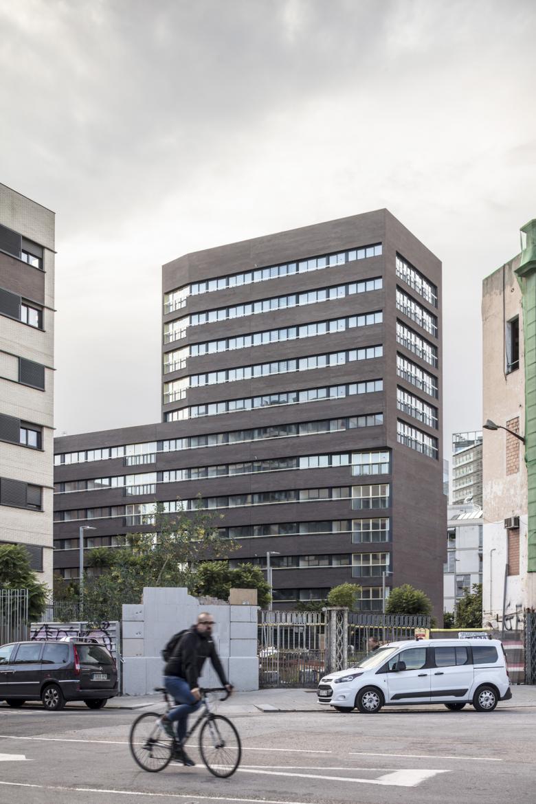 The building stands in a strange location, in a courtyard at the centre of a city block in the 22@ district with no direct access to the street.
