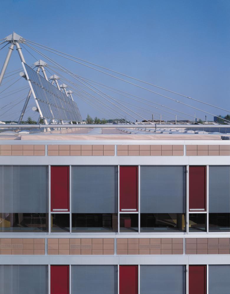 Wer Nachhaltigkeit verkauft, sollte in der Konsequenz auch in einem nachhaltig errichteten und betriebenen Gebäude produzieren. Solvis, Hersteller von Solaranlagen, tat genau das und nutzt die erste Nullemissionsfabrik Europas nicht nur für Produktion und Verwaltung, sondern ebenso als Imageträger. Empfohlen vom Fraunhofer-Institut für Solare Energiesysteme, überzeugten Banz + Riecks als seinerzeit einziges Büro mit der Erfahrung sowohl in energieoptimierten Verwaltungs- als auch Industriebauten aus Holz. In einem integralen Planungsprozess entstand ein Büro- und Produktionsgebäude ohne Emission von Treibhausgasen mit Nullemissionsbilanz.