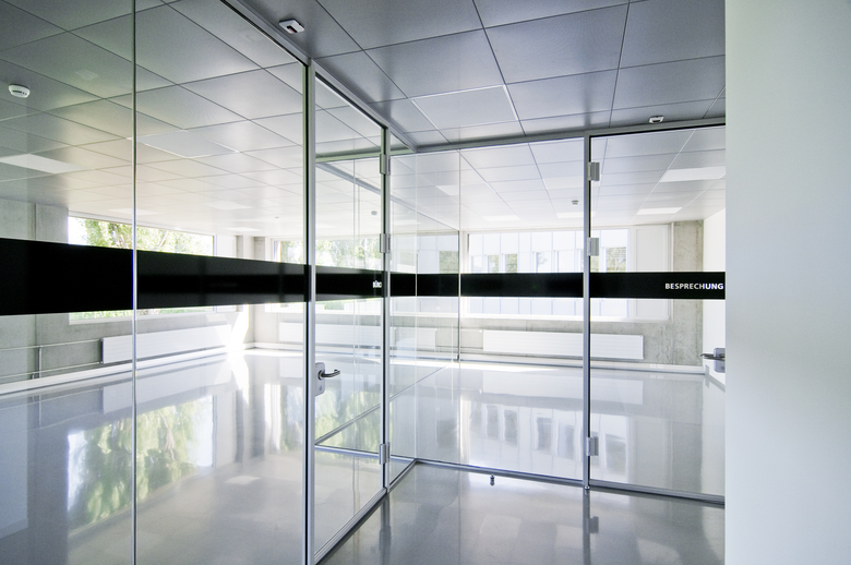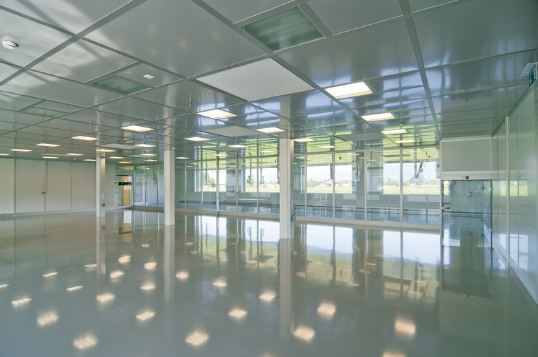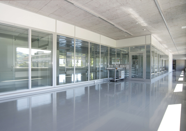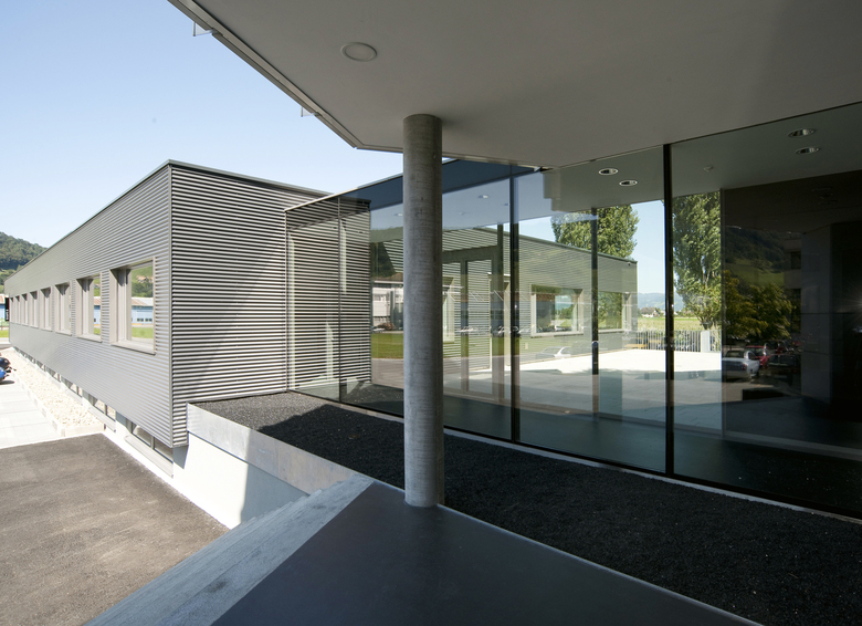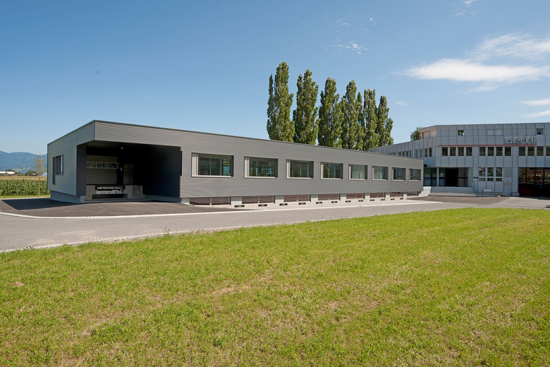 Das bestehende Betriebsgebäude aus den 80iger Jahren wurde um einen eingeschossigen Bau mit Reinräumen und Lagerfläche erweitert.