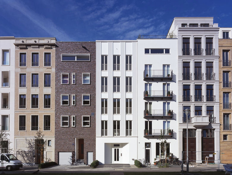 Das Haus stellt sich auf der 6,50 Meter breiten und 230 qm großen Parzelle als 5-geschossiges städtisches Wohnhaus mit einer Höhe von ca. 19 Metern dar. Das Grundstück wird vom 1. bis 4. Geschoss mit 12 Metern Haustiefe, im Erd- und Untergeschoss mit 18 Metern bebaut. Im Haus befinden sich drei Maisonett-Wohnungen.