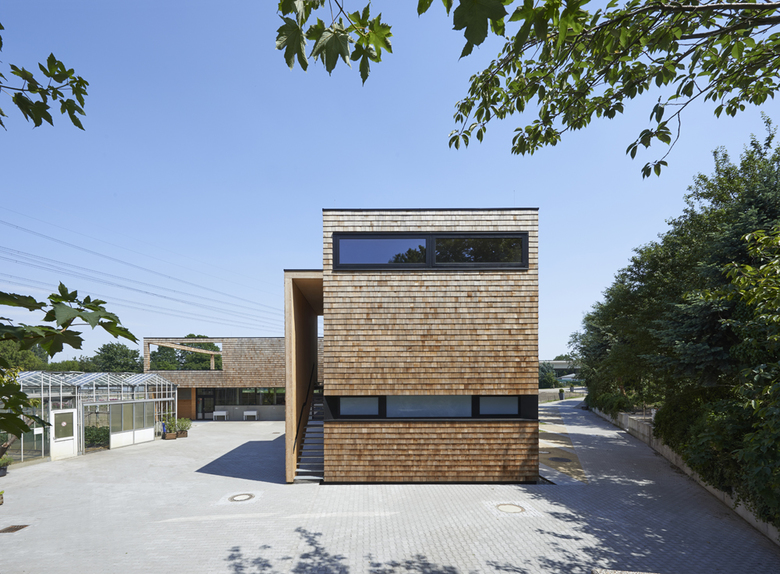 Mit dem Neubau des Werkstattgebäudes konnte, für die am Produktionsstandort Fürstenbrunnerweg Beschäftigten, eine wetterunabhängige Arbeitsstätte geschaffen werden, an die auch ein Hofladen angegliedert wurde. In diesem können die auf den Feldern erzeugten Produkte, entweder direkt oder weiterverarbeitet, vermarktet werden. Der L-förmige Neubau unterteilt seine Außenflächen in einen öffentlichen Vorplatz und den intimeren Arbeitshof.