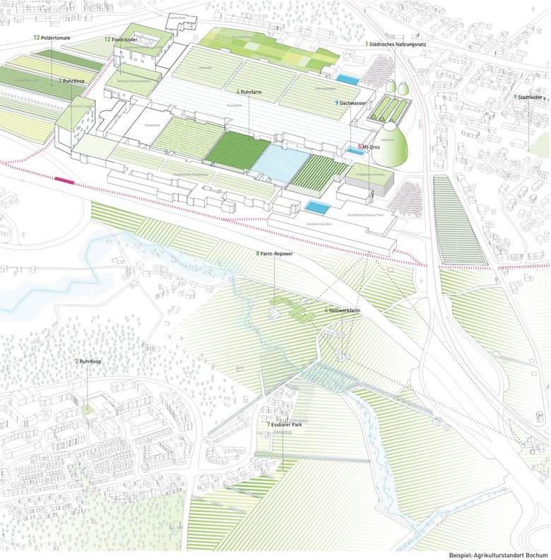 Die Feldstadt strukturiert den Umgang mit den großen landwirtschatlichen Bereichen und den urbanen Resträumen der Metropole Ruhr.
