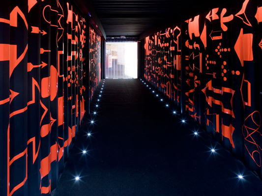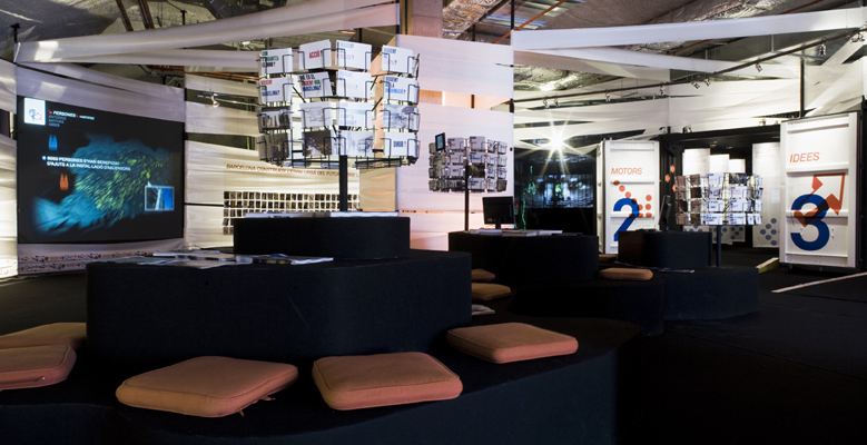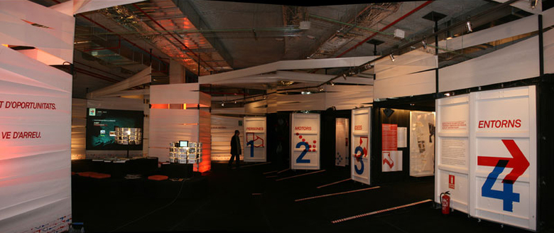 The exhibition takes place in three stages. Square entrance that citizens perceive as gains in the public sidewalk and must resolve the claim event and meeting space. The introduction is a unique space, which is understood and seen as a unit. It develops in the large attic room inside the space DHUB. The balconies on both thematic deepening shafts are programmatic viewpoint discovery of the space DHUB.
