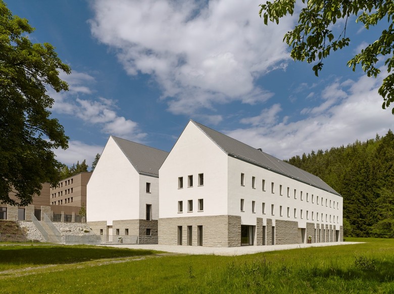 „Alles wirkliche Leben ist Begegnung“ – dieses Wissen prägte nicht nur die Philosophie Martin Bubers. „Begegnungen ermöglichen“ ist auch das Leitmotiv des Hauses Johannisthal, einem sehr lebendigen Ort des Glaubens. Dieses Bildungshaus der Diözese Regensburg liegt an einem einzigartigen, stillen und unberührten Ort der Schöpfung mitten im Naturschutzgebiet Waldnaabtal. Man kommt in diesem Tal an und fühlt sich sofort wie in einer besonderen Welt. Nicht schnell, nicht hektisch, nicht digital. Wasser, Wald, Wiese, die Weite des Himmels und die Reduktion auf das Wesentliche. Ein echter Ort des Rückzugs und der Besinnung. Unsere Spurensuche zu Beginn der Planungen begann 2007 mit einer Wanderung durch die Kulturlandschaft des Waldnaabtals. Dieser Fußmarsch, den wir unternahmen, um den Ort zu verstehen, war begleitet von dem Gefühl, dass hier etwas ganz Besonderes entstehen kann. Die Menschlichkeit mit der uns die Mallersdorfer Schwestern in Johannisthal empfingen, aufnahmen und willkommen hießen war unbeschreiblich. Besondere Menschen an einem besonderen Ort.
