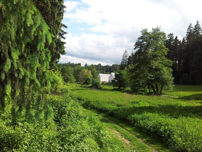 Ein besonderer Ort der Schöpfung. Mitten in der Natur. Eine Wanderung durch das Naturschutzgebiet Waldnaabauen durch den Wald von Falkenberg nach Windischeschenbach. Granit, Holz, Wasser, die Weite der Landschaft und die Unendlichkeit des Himmels. Am Endes des Waldes auf einer Lichtung erblickt man eine steinerne Kapelle am Wegesrand. Davor die Waldnaab, dahinter weitere Häuser des Hauses Johannisthal.
