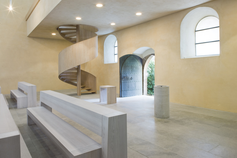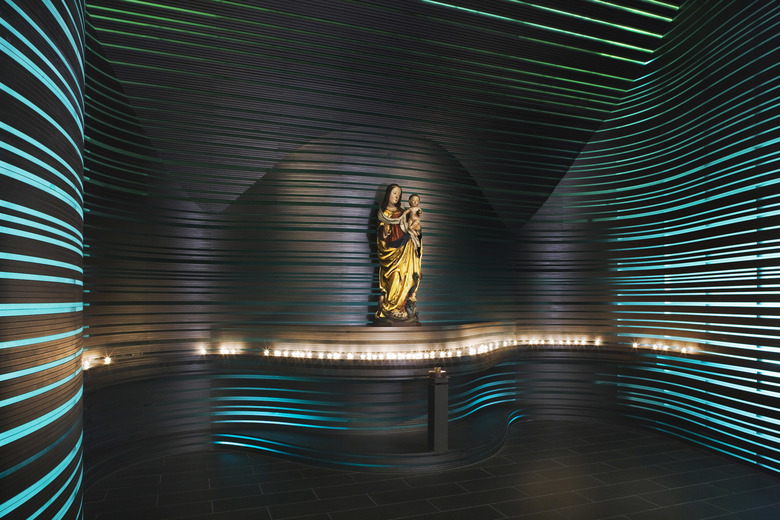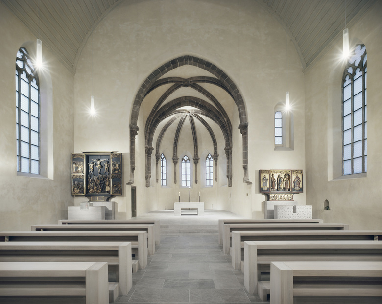 Die steinerne Skulptur der Apsis erscheint im Stadtraum, das bergende Gefäß der Kirche aus Naturstein erzählt Geschichte – ein besonderer Ort – aufgeladen von Jahrhunderten. Echtes Material trägt Information und Neugier. Weg – Vorplatz und Raum mit Geheimnis offene Türen, keine Schwellen, Zone des Übergangs, der Einstimmung – des Eintritts – eine Einladung. Warmes Licht fällt an ausgewählten Stellen durch und in die Fugen weiche Formen schreiben sich in den Raum und leiten hinein. Die Stadt bleibt zurück. Stille – Andacht – leise Worte – leise Schritte Brennende Kerzen im Schutz der Madonna erzählen von Menschen, ihren Wünschen, Gebeten und Dank. Tages- und Mondlicht fällt durch die Zeitfenster der Vergangenheit. Es trifft auf Gegenwart und Zukunft im Wechsel von Tag und Jahr. Große Arkaden mit gläserner Membran versprechen mehr – Tritt ein – Raum – Kirchenraum – Freiraum Das Innere im letzten Krieg, seiner Haut und des hölzernen Himmels beraubt geprägt vom Wiederaufbau – will Neues aufnehmen und sich verbinden Romanisch-gotische Jahrhunderte sprechen mit dem Jetzt Die Oberflächen von wahren Materialien – meisterlich gefügt – verweben sich durch lichte Farbe mit dem Raum Die mineralisch funkelnde Tiefe des Putzes trifft auf samtigen Stein und mattes Holz. Gedämpftes Licht fällt durch frei atmendes Glas Wunderbarer Raum, verbunden, erfüllt und geleitet von Menschen mit echten Worten. Räume für Andacht, Gottesdienst, Seelsorge, Gespräch und Begegnung eine Oase für Kultur und Kunst eine wahrlich offene Kirche.