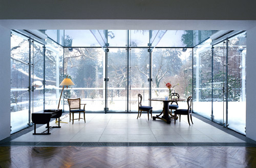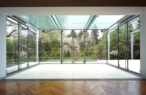 But as advanced the technical details seems a demonstration of such know-how was of secondary importance for us. We regard the here-used progressive glass technology as a means to an end. The exaltation of architecture and technology is to be replaced by the atmosphere of a constantly changing natural environment. In that way the glazed garden room can serve as an activating organ of the pure perception.