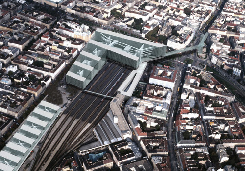 In the area of west railway station was planed to be built in the future big volume of 130.000 m3. The planning Department of the Viennese municipality has decided to allow the building of 120m high skyscrapers, mostly intended for office use.