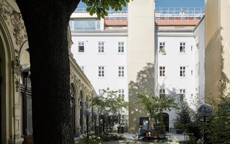 Von außen erkennt man in der Berggasse lediglich die renovierten Fassadenfronten und Dachflächen. Das Bürgerhaus im Stile des Biedermeier wurde im Sinne des Denkmalschutzes umfassend revitalisiert: der neobarocke Saal im Innenhof wurde unter Begleitung von Denkmalforschern und Archäologen restauriert, Stuckaturen, Ornamente und die historische Lambris wurden rekonstruiert. Im Dachgeschoss der Liegenschaft kam es zur Errichtung sechs neuer Wohnungen mit zwei Aufzugsanlagen unter detailgetreuem Erhalt der geschützten Dachstuhlkonstruktion. Eine besondere Bedeutung kommt dem zweiten Kellergeschoß zu. Bei den Renovierungsarbeiten stieß man unterwartet hinter mehreren Vormauerungen auf Räumlichkeiten, die laut archäologischen Untersuchungen auf eine semilegale Jazz Bar der 1950er und 60er Jahre schließen ließen. Im Kellergewölbe verborgen befindet sich heute die krypt.bar.